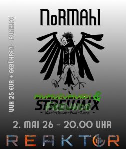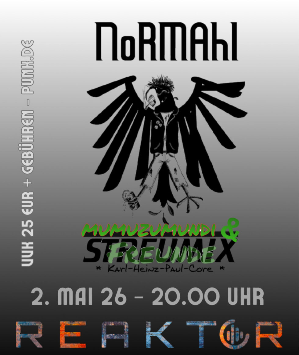 Im Reaktor Schongau kommt es am 2. Mai zu einem besonderen Ereignis: Nicht nur wir werden zusammen mit Normahl auf der Bühne stehen, sondern wir helfen auch mit Mumuzumundi zum Leben zu erwecken, damit manche der legänderen Songs mal wieder live zu hören sind (die Friends 😉)